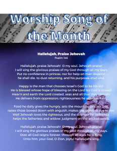 This month, we will be singing a hymn that is even more directly tied to the Psalms. Hallelujah, Praise Jehovah is an example of what we call a metrical, versified, or rhymed Psalm. Throughout the month of February, we will look at Psalm 146 (NIV) side by side with the metered version, and enjoy singing what is essentially Scripture itself.